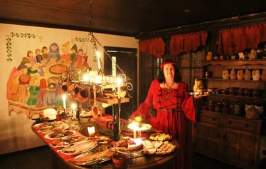 Keskiaikaravintola Wanhan Auttin Juhlaillalliset seisovasta pöydästä.